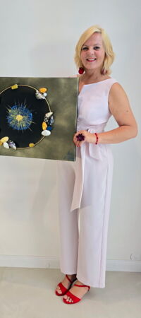 Seit über 35 Jahren arbeite ich als Hebamme und das Malen begleitet mich. Die intensive Naturkraft der Sturmflut im Oktober 2023 beeindruckte mich sehr und nahm entscheidenden Einfluss auf die Natur-Acryl-Kunst. Das Thema “Natur, Fantasie, Farbe“ beschreibt die unbekannte Reise des Treibholzes bis hin zur charmanten, fantasievollen Inszenierung auf Acryl.